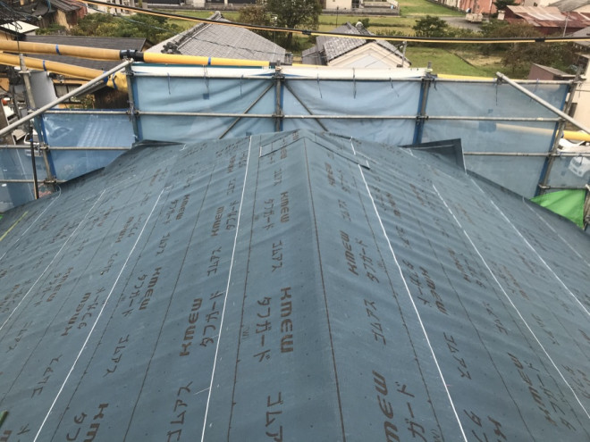 写真のように、瓦の下に敷かれている下地材が防水シートです。
