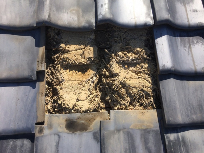 しかし、年数が経ち屋根土の保持力が弱まってくると、棟部にある棟瓦が歪んだり、のし瓦がずれたりします。
