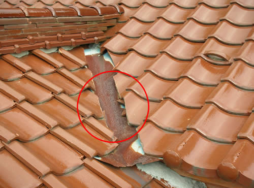 銅、ステンレスなど耐久性の高い金属が使用されていますが、古くなると、錆びたり、穴が空いたりします。