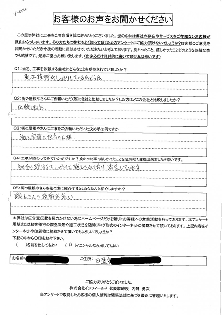 - 細かい部分までしっかりと施工されており満足しています