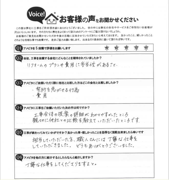 担当者の方の説明がしっかりしていた事と、細かい所までしっかりとやって頂き満足しております。 -