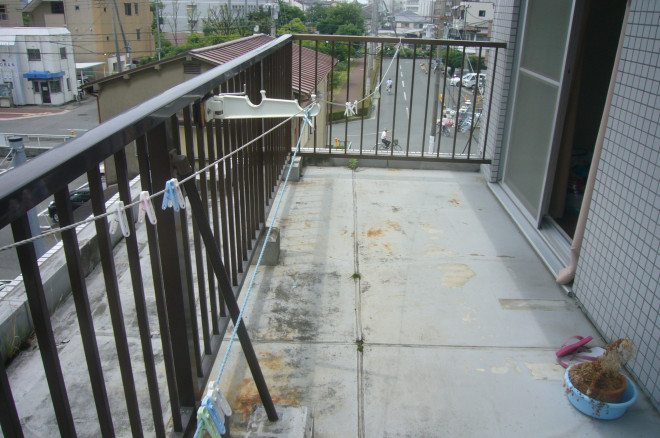 吹田市の賃貸マンションで雨漏りの調査に行きました。3階の部屋の壁のクロスが剥がれていました、畳も濡れていましたし、相当量の水が漏れたようです。4階のベランダを見させて頂きました。その結果ベランダ床に大きめのクラックが有ります。笠木部分にもクラックが有ります。今回の雨漏り調査は分かりやすい場所で特定が早くできました。前回の防水工事から相当年数が経過しているようです。賃貸住宅の場合は入居者も、あまり住まいの痛み具合は気にしないので実際に雨漏りするまで気が付きにくいので対処がどうしても後手にまわります。防水の工法は大きく分けてゴムシート系防水、塗膜防水、アスファルト防水等に分かれます。その中でも多種多様に分かれます。どんな工法にも一長一短があり適材適所で使い分けます。保証もメーカー・工法によって変わってきます。防水だけは完璧を求められる工事ですから熟練の職人の技が必要です。